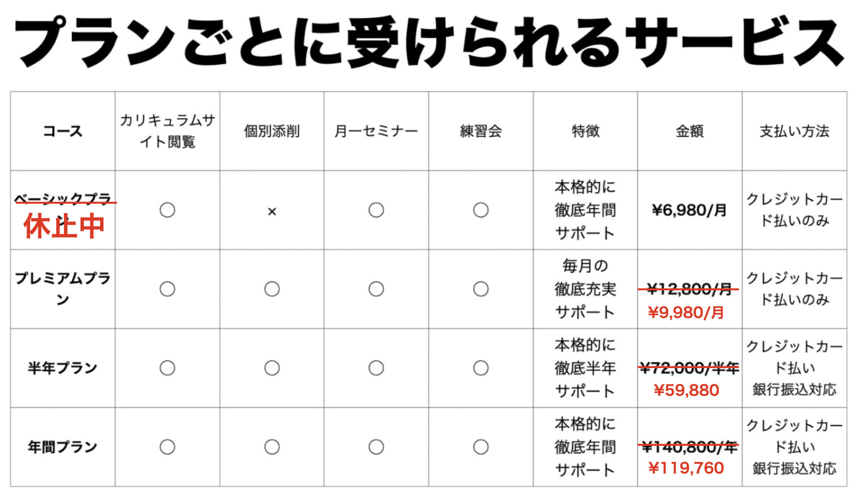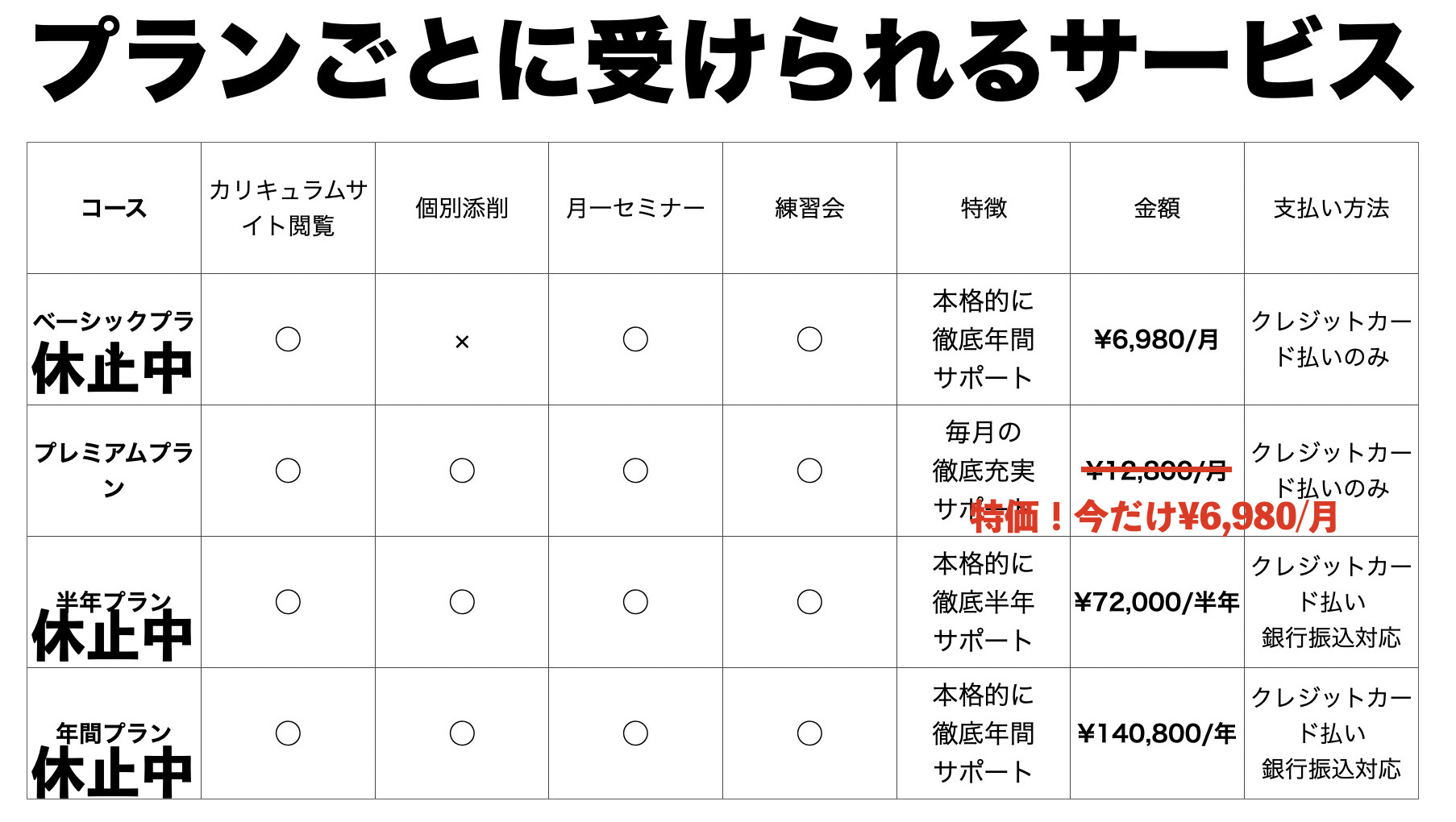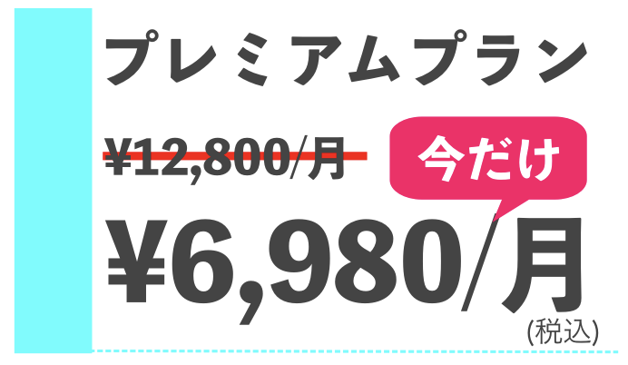 通常は月額12,800円のプランですが、リニューアル期間中に限り、キャンペーン価格月額6,980円で受講いただけます。