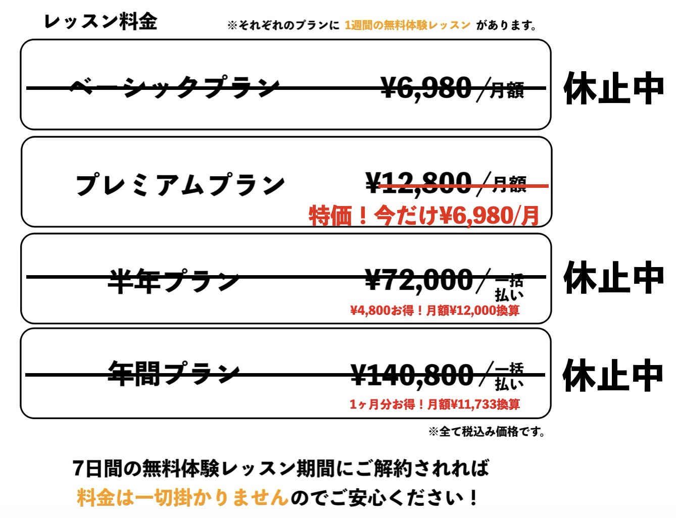 現在、アドリブコースはカリキュラム内容を大幅にリニューアル中です。そのため、すべてのカリキュラムがまだ完成していない状態ですが、もし現段階でも受講をご希望の方には、カリキュラム工事中の特別価格にてご案内させていただきます。
