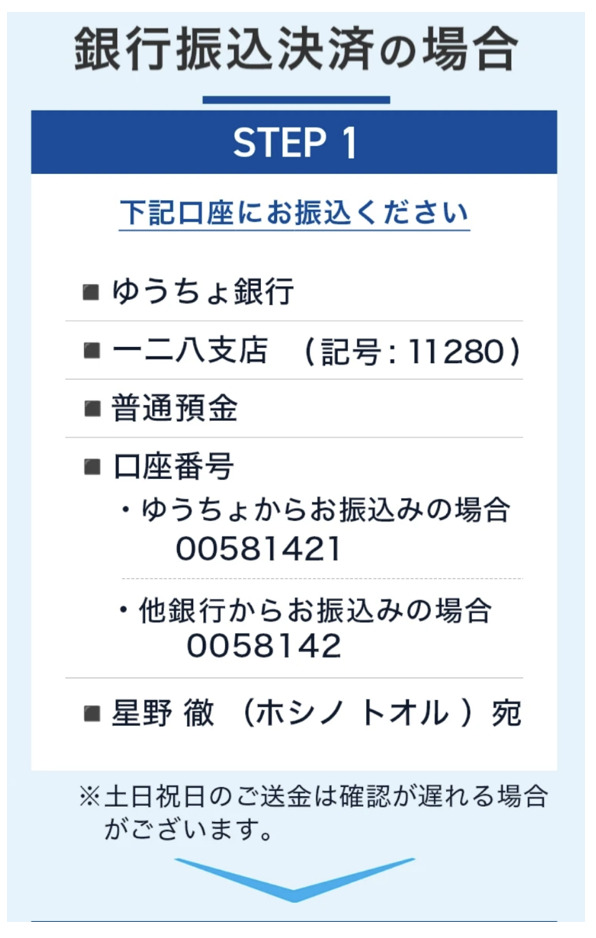 ご決済を確認できましたら、24時間以内にご登録のメールアドレスに今後の流れをお送りします。
