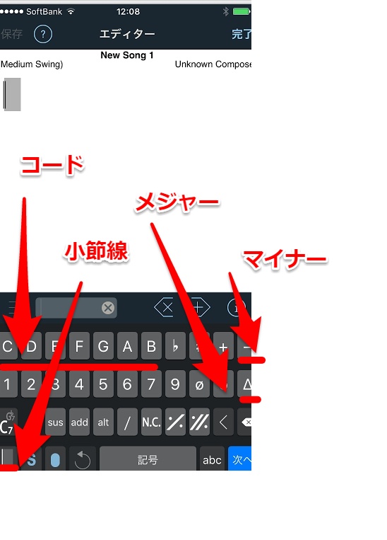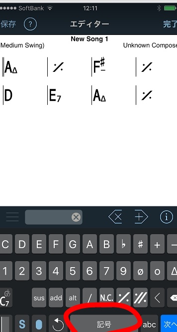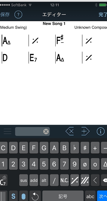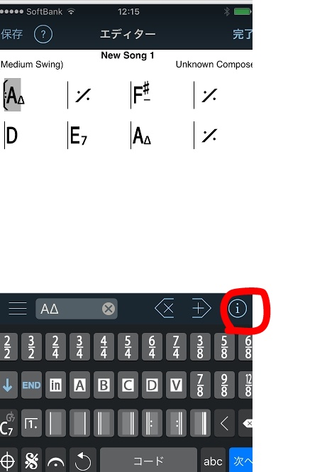 任意の曲を開き、上のペンマークをタップし、「新曲」をタップ。