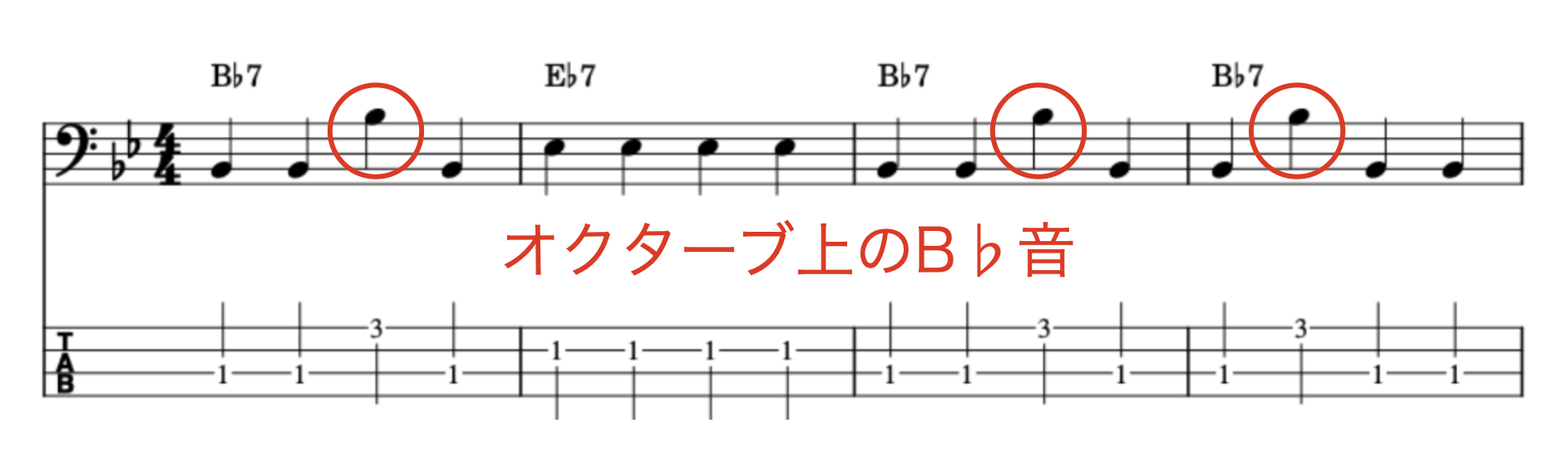 ルートだけに慣れてきたら、オクターブを加えます。音の上下の動きが出て、ラインが少し立体的になります。